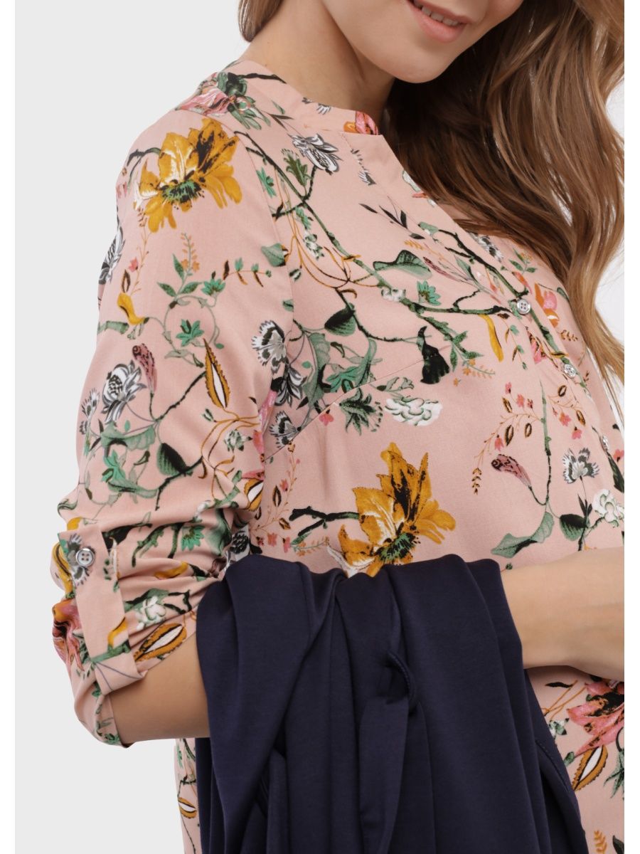 Тип: для беременных и кормящих. Ткань: плательно-блузочная. Удобство кормления грудью: планка на пуговицах. Длина по спинке: 70 см. Длина рукава: 50 см. Рекомендации по уходу: деликатная стирка в стиральной машине при 30C.