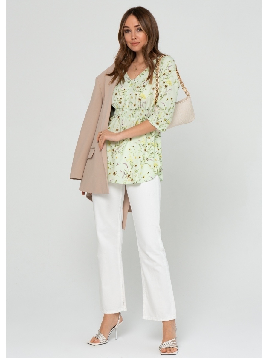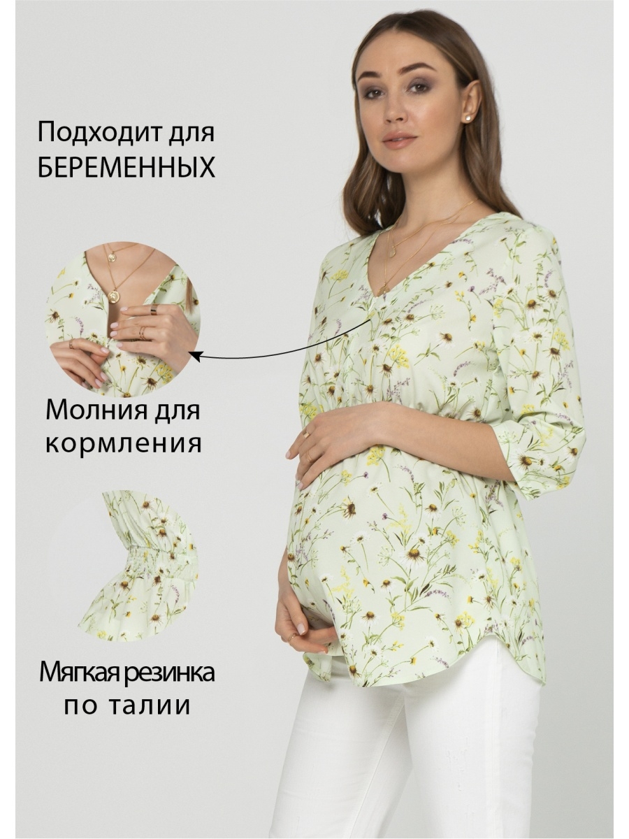 Блузка женская летняя Кэрри для беременных и кормящих женщин добавит эффектности любому повседневному образу. Удлиненная приталенная рубашка с цветочным принтом разработана с учетом постепенного увеличения живота и скроена по особому лекалу, с завышенной талией, с мягким поясом на резинке и с рукавом три четверти что придает модели непринужденность и легкость, выгодно подчеркивая Вашу фигуру, а незаметный и удобный секрет кормления на молнии, выглядит как элемент дизайна и позволяет покормить малыша в любой момент. Туника женская для кормления изготовлена из экологически чистой вискозы, благодаря чему ткань легкая и приятная к телу.Наша универсальная блузка рубашка создана для удобного стиля на каждый день, это одновременно блузка офисная, блузка праздничная нарядная, блузка вечерняя, туника пляжная, подойдет как для невысоких, так и для высоких. Свободный крой позволяет носить блузку как во время беременности, так и после, в период кормления малыша.