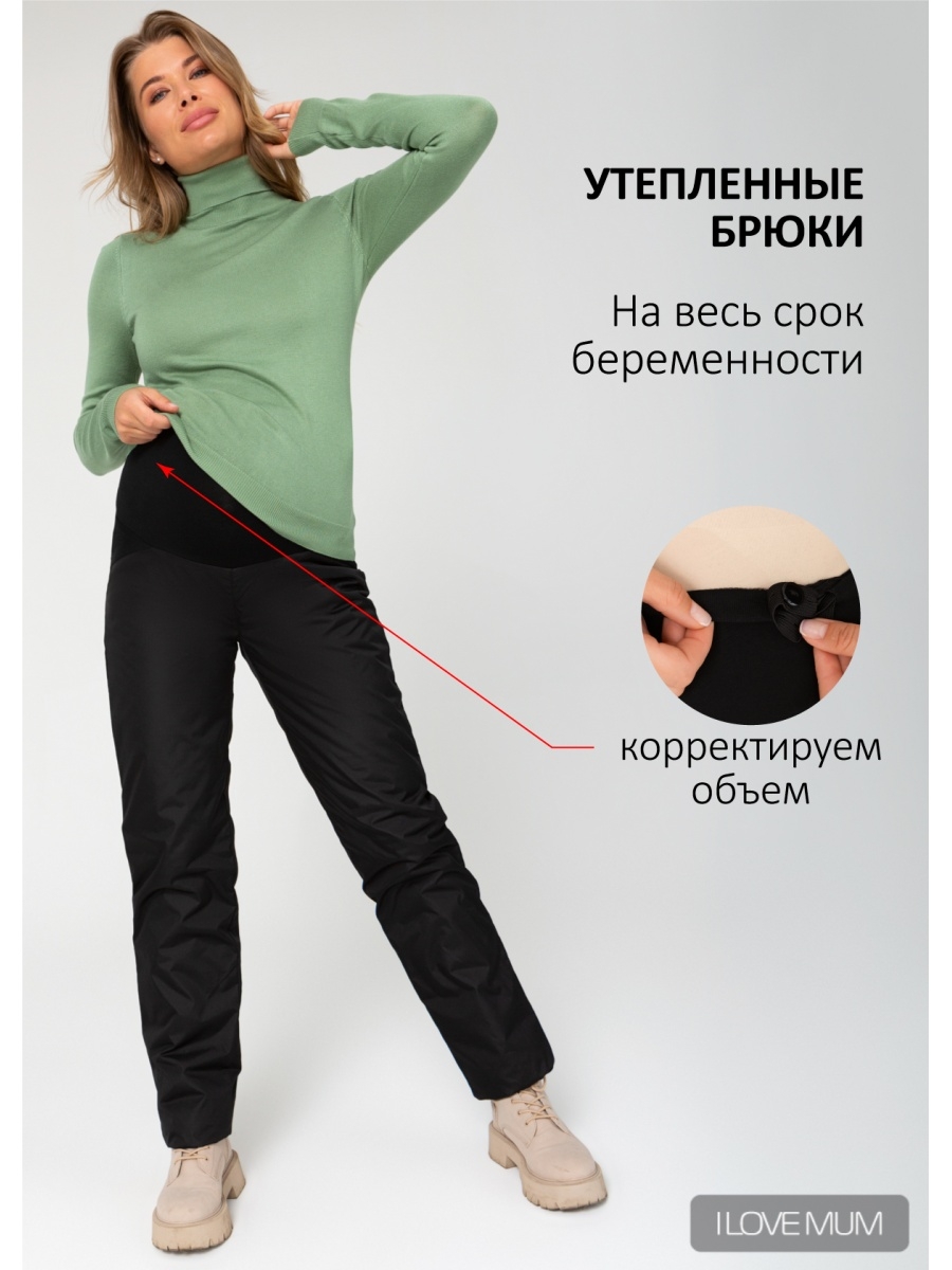 Утепленные зимние брюки I love mum для беременных выполнены из курточной ткани , ткань имеет водоотталкивающую пропитку. Утеплитель: синтепон (100гр/м). Пояс: круговая эластичная трикотажная вставка на живот. Теплые, непродуваемые брюки для беременных - отличный вариант для ношения в холодное время года, ни ветер, ни осадки не помешают вам насладиться эмоциями от прогулок даже в суровую зиму (до -20C).