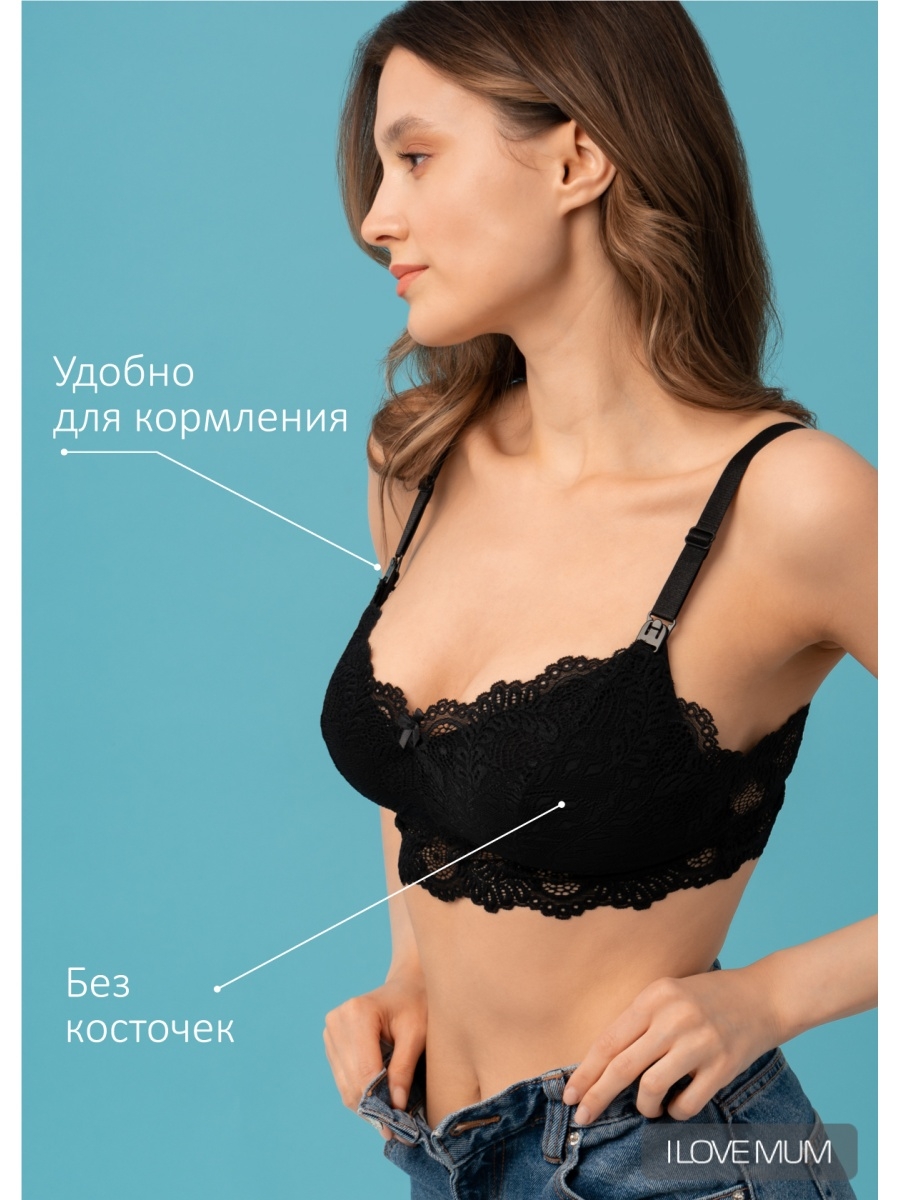 Женственный и практичный бюстгальтер для кормления влюбляет с первого взгляда и прикосновения. Обладает приятной телу мягкостью трикотажа и функциональным кроем. Модный бюстгальтер без косточек идеален для любого триместра беременности. Надежно поддерживает грудь, но не давит. Качественное нижнее женское белье именитого бренда - это лучший топ для кормящих мам, в нем удобно кормить малыша, чувствуя себя привлекательной. Бюстгальтер выполнен из гипоаллергенного 95% хлопка с эластанном, декорирован изящным кружевом. Кожа в лифе для кормления из хлопка дышит. Лифчик для беременных с секретными застежками можно расстегнуть одной рукой, покормив ребенка с максимальным комфортом дома и на улице. Купите бюстгальтер в роддом или для повседневной носки, дополнив комплект трусиками в тон. Белье для беременных и кормящих не потеряет форму после многочисленных стирок. Это именно тот лифчик для кормящих мам и женщин в прекрасном положении, который вы искали. Спасибо I LOVE MUM!