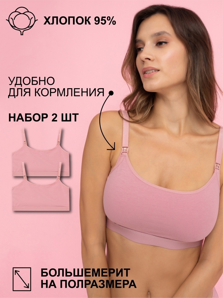 Набор из 2-ух базовых бюстгальтеров топов для беременных и кормящих. Бюстгальтеры выполнены из хлопкового трикотажа. БОЛЬШЕМЕРЯТ на ПОЛ РАЗМЕРА. Мы увеличили объем, чтобы будущая мама чувствовала максимальный комфорт во время всего срока беременности. Бюстгальтер разработан с учетом изменения пропорций тела во время беременности, а также с учетом увеличения груди в период кормления. Для легкого доступа к груди предусмотрена клипса с боковой поддержкой на каждой бретели. Лифчик для беременных максимально комфортем дома и на улице. Купите бюстгальтер в роддом или для повседневной носки. Бретели классические с регулировкой, ширина 14 мм. Рекомендуем деликатную стирку при 30С в мешочке для белья.