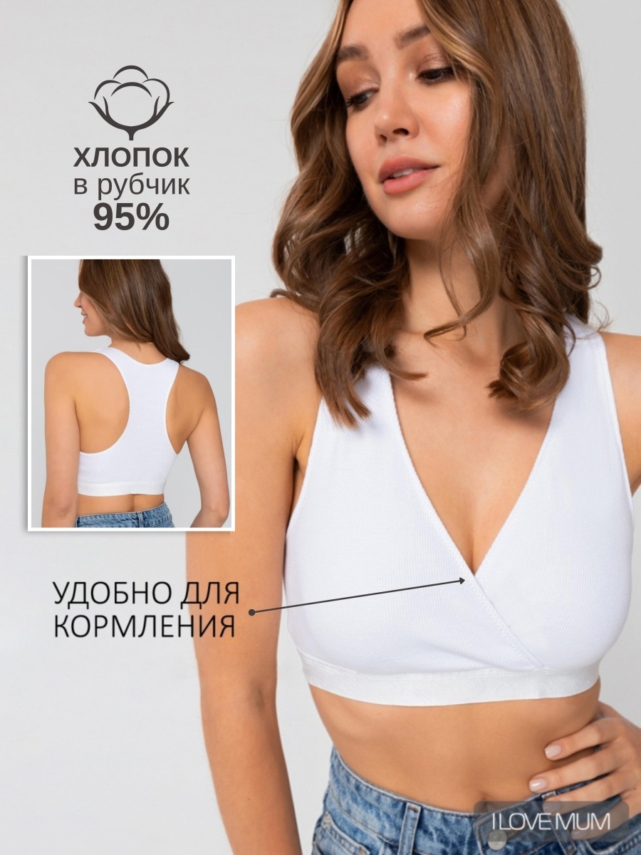Бюстгальтер для кормления "**Келли**" - изюминка коллекции белья для беременных от авторитетного лидера рынка I LOVE MUM. Практичный дизайн лифчика для беременных и кормящих продуман до мелочей. Впрочем, в данном вопросе мелочей не бывает, и модель доказывает это на 100%! Женский топ выполнен из дышащего хлопка премиум качества с эластанном. Крой белья для беременных соответствует изменениям пропорций тела от раннего срока до родов, а также в период лактации. Легкий доступ к груди для кормления, модный и практичный топ для беременных из мягкого трикотажа не жмет, не натирает. Лучшая одежда в роддом и для повседневной носки. Подходит как бюстгальтер для занятий спортом.Лиф для кормления премиум качества не теряет форму, не образует катышек. Рекомендована бережная стирка при 30 и легкий отжим. Бюстгальтер "**Келли**" - лучший выбор для комфортной беременности и послеродового контакта с малышом!