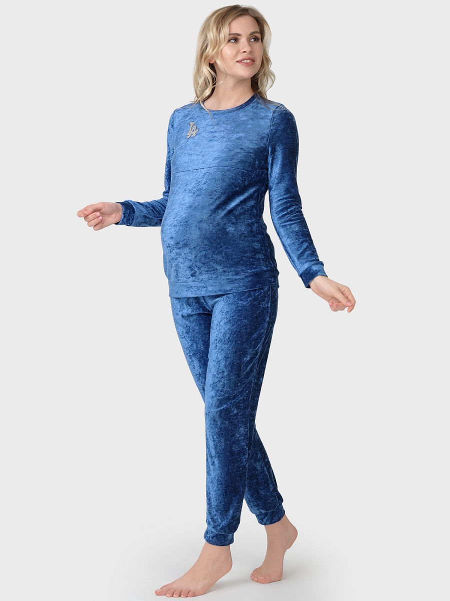 Домашний трикотажный костюм I love mum для беременных и кормящих. Удобство кормления в данном брючном костюме: потайная горизонтальная молния. Карманов нет. Пояс брюк: под живот