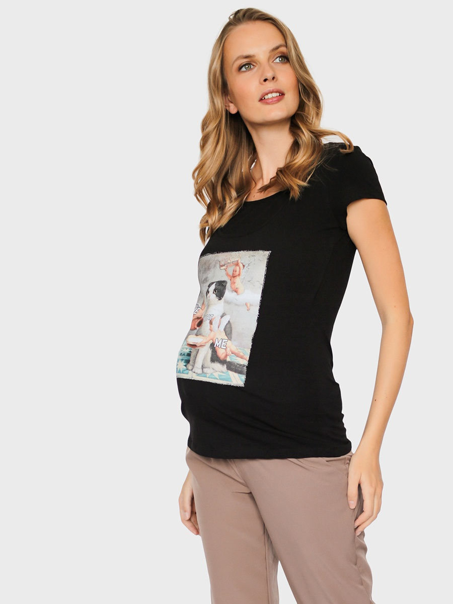 Футболка с принтом I love mum для кормящих из хлопкового трикотажа. Удобство кормления: двухслойная верхняя часть.