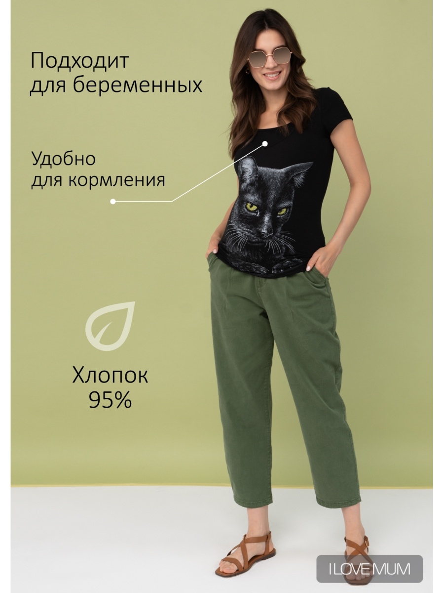 Футболка с принтом I love mum для кормящих из хлопкового трикотажа. Удобство кормления: двухслойная верхняя часть.