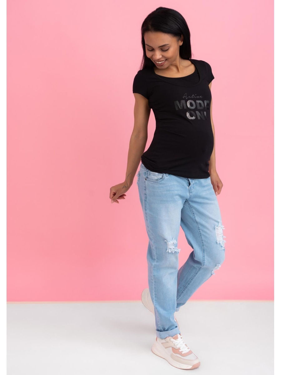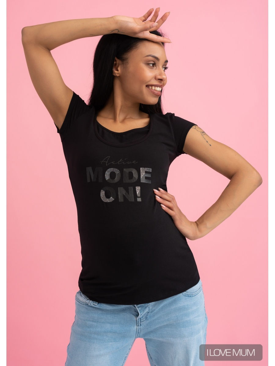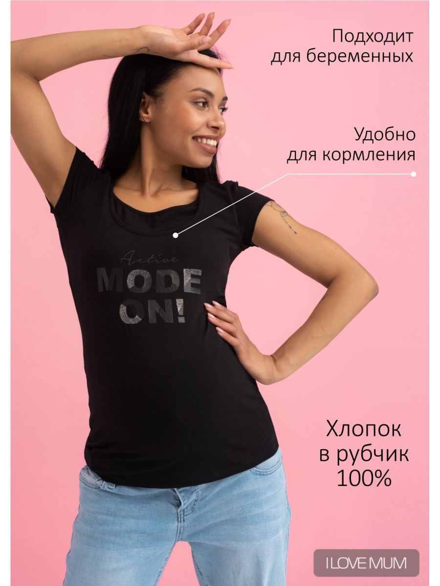 Футболка с принтом I love mum для кормящих из хлопкового трикотажа. Удобство кормления: двухслойная верхняя часть.