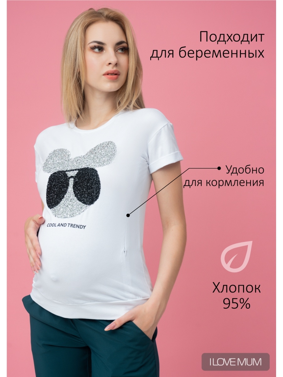 Тип: для беременных и кормящих. Ткань: хлопковый трикотаж. Удобство кормления: потайные вертикальные молнии. Детали: фиксированный подгиб на рукавах.
