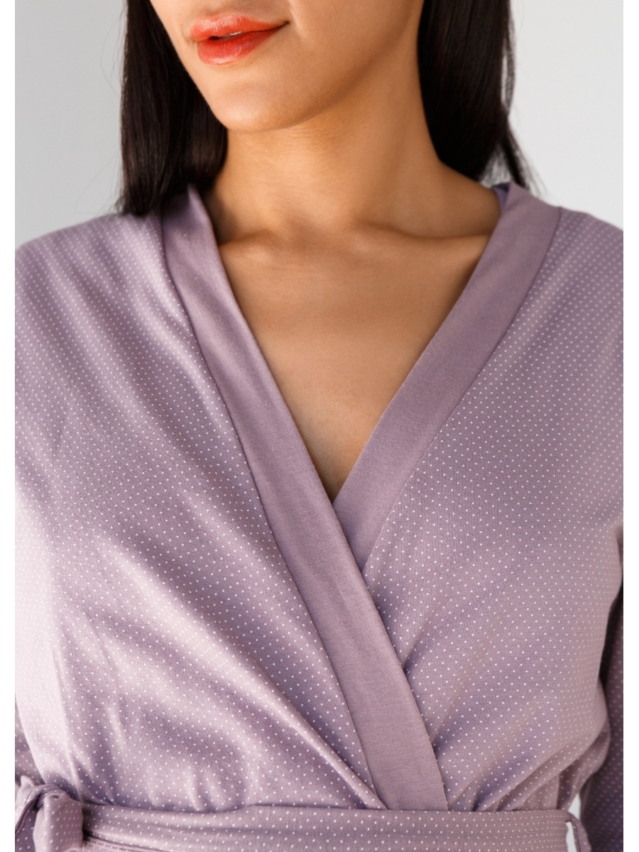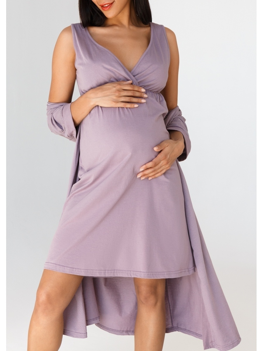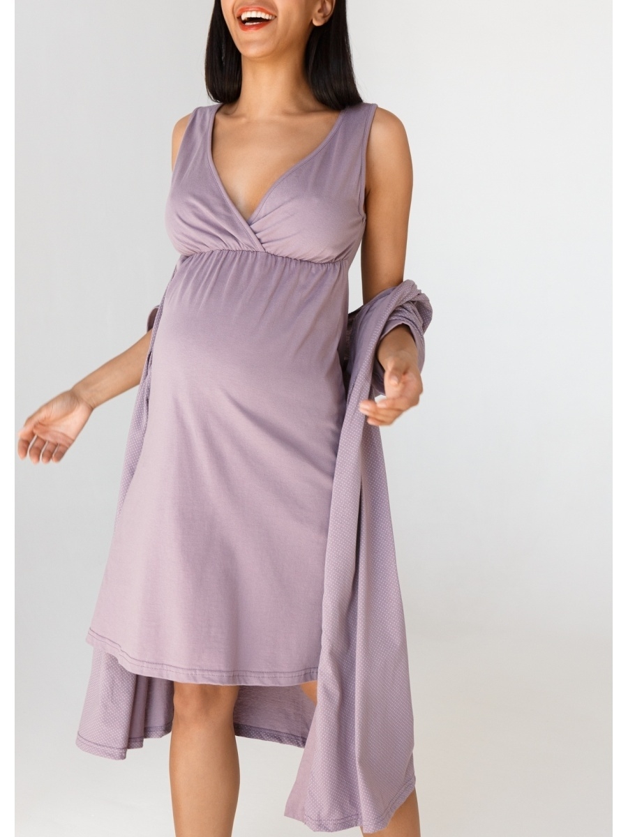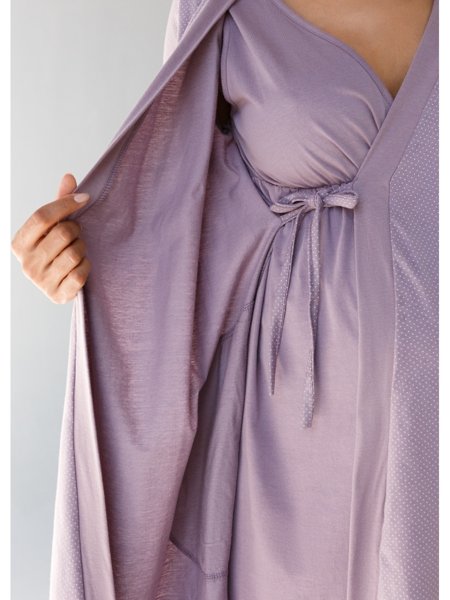 Комплект для беременных халат и ночная сорочка в роддом из натуральной ткани хлопок трикотаж - домашняя одежда для беременных. Ночная рубашка женская для беременных и для кормящих скроена на запах, для легкого кормления грудью удобна для мамы, у вас будет больше времени на сон и восстановление. Сорочка для рожениц позволяет коже дышать, хорошо впитывает влагу, не прилипает к телу. Можно взять этот комплект халат и ночная сорочка для роддома и в больницу. Домашний комплект для кормления не сдавливает увеличивающийся в размерах или уже большой животик. Ночнушка женская для будущих мам подчеркивает силуэт и дарит максимальный комфорт. В меру короткая ночная сорочка для кормления грудью с запахом и красивый халат с длинным рукавом позволит женщинам и девушкам дома выглядеть женственно и чувствовать комфортно, чем в платье, комбинации или пижаме. Этот домашний костюм для кормящих халат с ночнушкой с рисунком в горошек и другим принтом позволяет будущей маме выглядеть стильно в любом месте.
