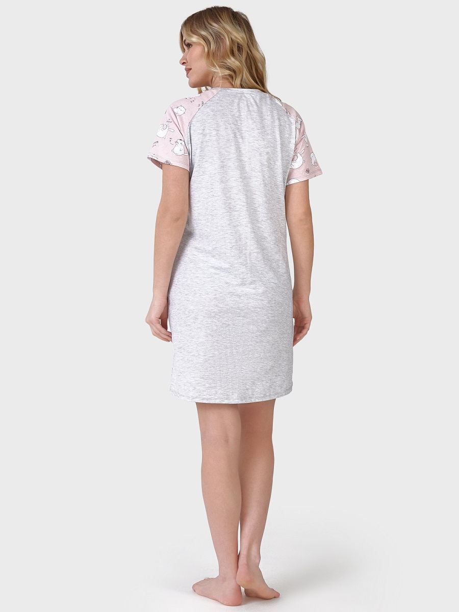 Простое домашнее платье I love mum для беременных и кормящих выполнено из 100% хлопкового трикотажа (кулирки). Удобство кормления в этом летнем коротком платье: прорези с двух сторон по груди без молнии кармашком.