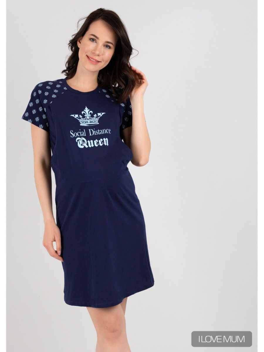 Простое домашнее платье I love mum для беременных и кормящих выполнено из 100% хлопкового трикотажа (кулирки). Удобство кормления в этом летнем коротком платье: прорези с двух сторон по груди без молнии кармашком.