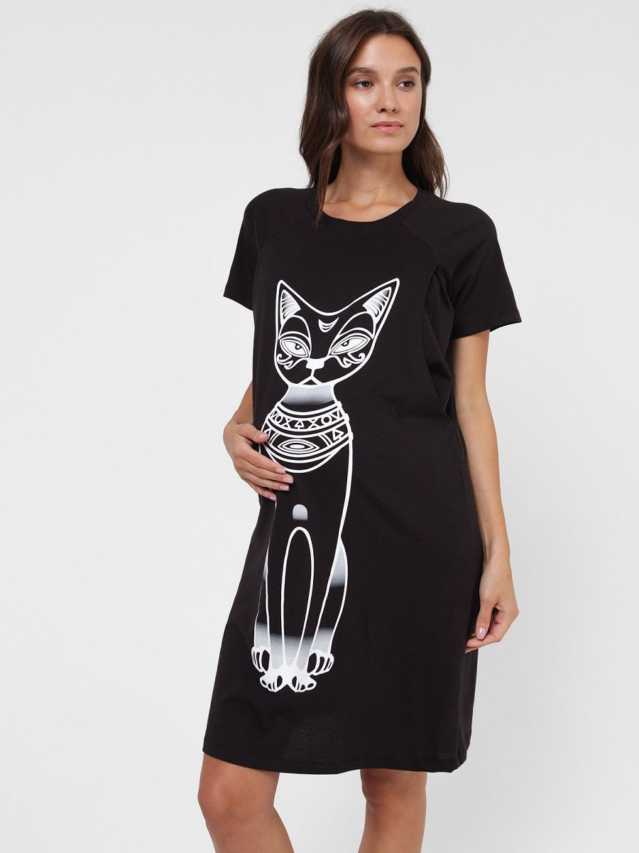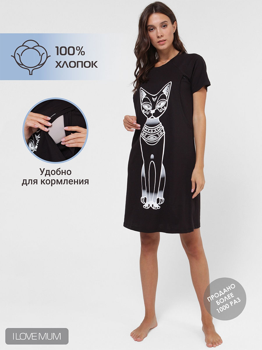 Простое домашнее платье I love mum для беременных и кормящих выполнено из 100% хлопкового трикотажа (кулирки). Удобство кормления в этом летнем коротком платье: прорези с двух сторон по груди без молнии кармашком.