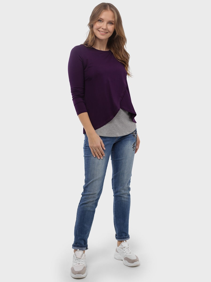 Трикотажный лонгслив I love mum для беременных и кормящих. Удобство кормления: внутренняя маечка под верхним слоем. Длина рукава: 60 см.