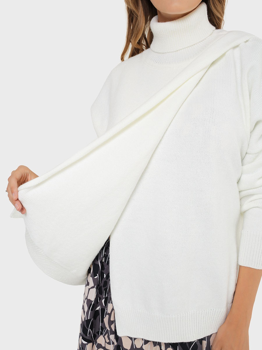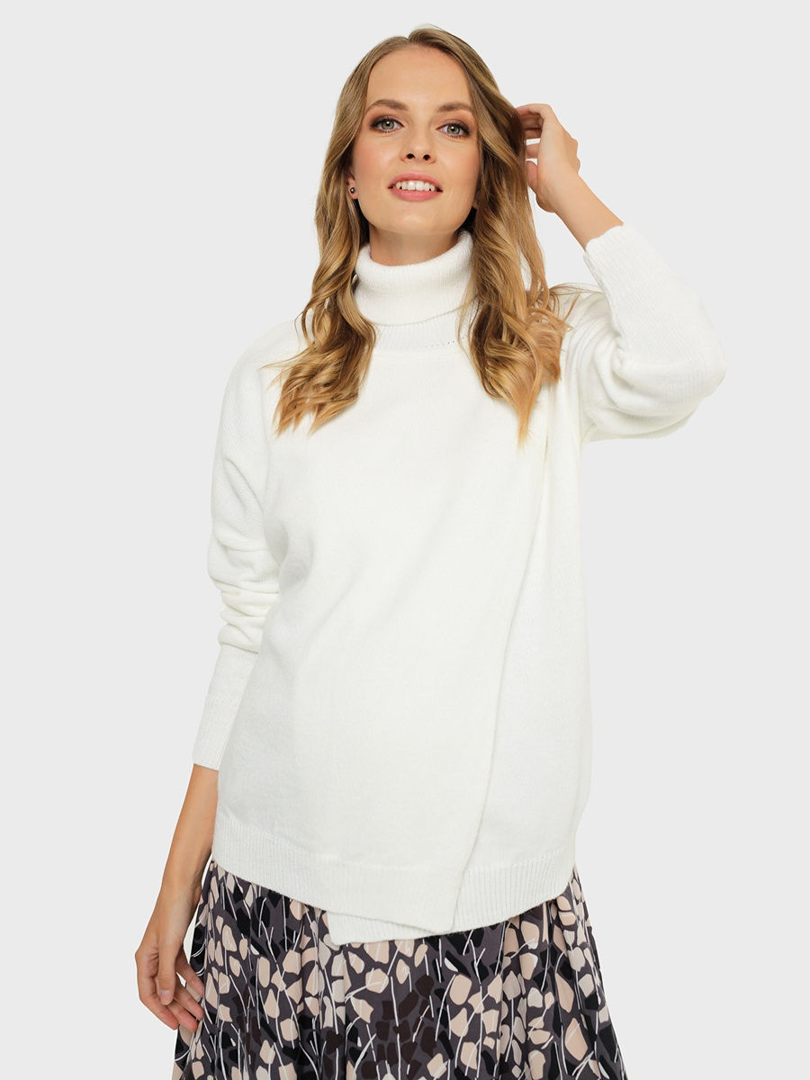 Джемпер женский вязаный оверсайз для беременных и кормящих. Ткань: теплый вязаный трикотаж. Удобство кормления: двухслойная внешняя часть (без внутренней маечки). Длина по спинке: 66 см. Длина рукава (реглан): 73 см.