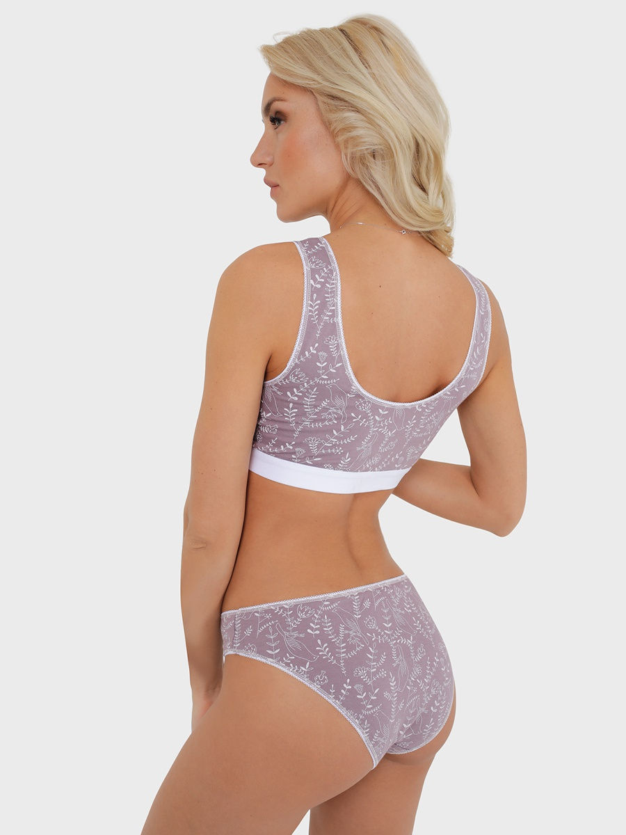 Трикотажный комплект белья для беременных и кормящих состоит из топа для кормления и трусиков из 100% мягкого хлопкового трикотажа. Чашечка бюстгальтера для кормления мягкая, без косточек, комфортная. Удобство кормления: достаточно отогнуть мягкую чашечку лифа. Швы на лифчике и трусах гладкие, незаметны под одеждой.Комплект белья универсален, его можно носить как до, во время, так и после беременности. Комплект белья для беременный и кормящих - станет прекрасным подарком будущей маме, жене, подруге или себе.