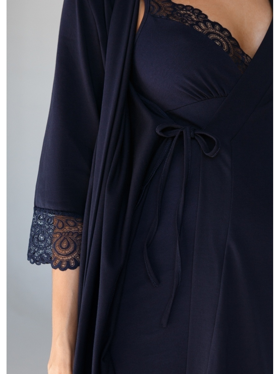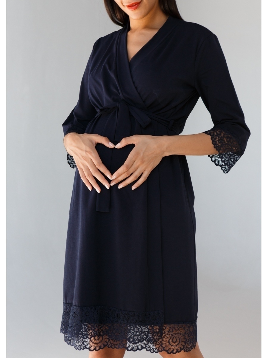 Комплект для беременных Амели халат и ночная сорочка в роддом из натуральной ткани хлопок трикотаж - одежда для беременных домашняя. Ночная рубашка женская для беременных и для кормящих скроена на запах, для легкого кормления грудью удобна для мамы, у вас будет больше времени на сон и восстановление. Сорочка для рожениц позволяет коже дышать, хорошо впитывает влагу, не прилипает к телу. Можно взять этот комплект халат и ночная сорочка для роддома и в больницу. Домашняя одежда для кормления не сдавливает увеличивающийся в размерах или уже большой животик. Ночнушка женская для беременных подчеркивает силуэт и дарит максимальный комфорт. В меру короткая ночная сорочка для кормления грудью с запахом и красивый халат с длинным рукавом позволит женщинам и девушкам дома выглядеть женственно и чувствовать комфортно, чем в платье, комбинации или пижаме. Этот домашний костюм для кормления халат с ночнушкой с рисунком в горошек и другим принтом позволяет будущей маме выглядеть стильно в любом месте.