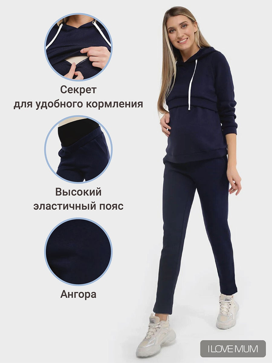 Спортивный костюм для беременных и кормящих ILOVEMUM является универсальным комплектом женской одежды для дома, прогулок, отдыха и спорта. Теплый, спортивный женский костюм, Бриена - хит сезона осень-зима. Утепленный, спортивный костюм для беременных и кормящих мам идеально подходит для прогулок в прохладную демисезонную погоду, осень и зиму. Стильный костюм из нежного, приятного трикотажного джерси, состоит из свитшота, толстовки, худи с длинным рукавом и секретом кормления и брюк с боковыми карманами и широкой, гибкой резинкой под живот. Теплый трикотажный, женский спортивный костюм - это идеальный подарок беременной женщине, будущей маме, подруге, подарок маме и для женщины любого возраста. В спортивном костюме, есть секрет кормления, который позволит с удобством кормить малыша грудью в любое время и в любом месте, не привлекая внимания.