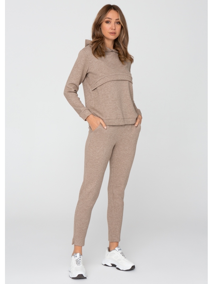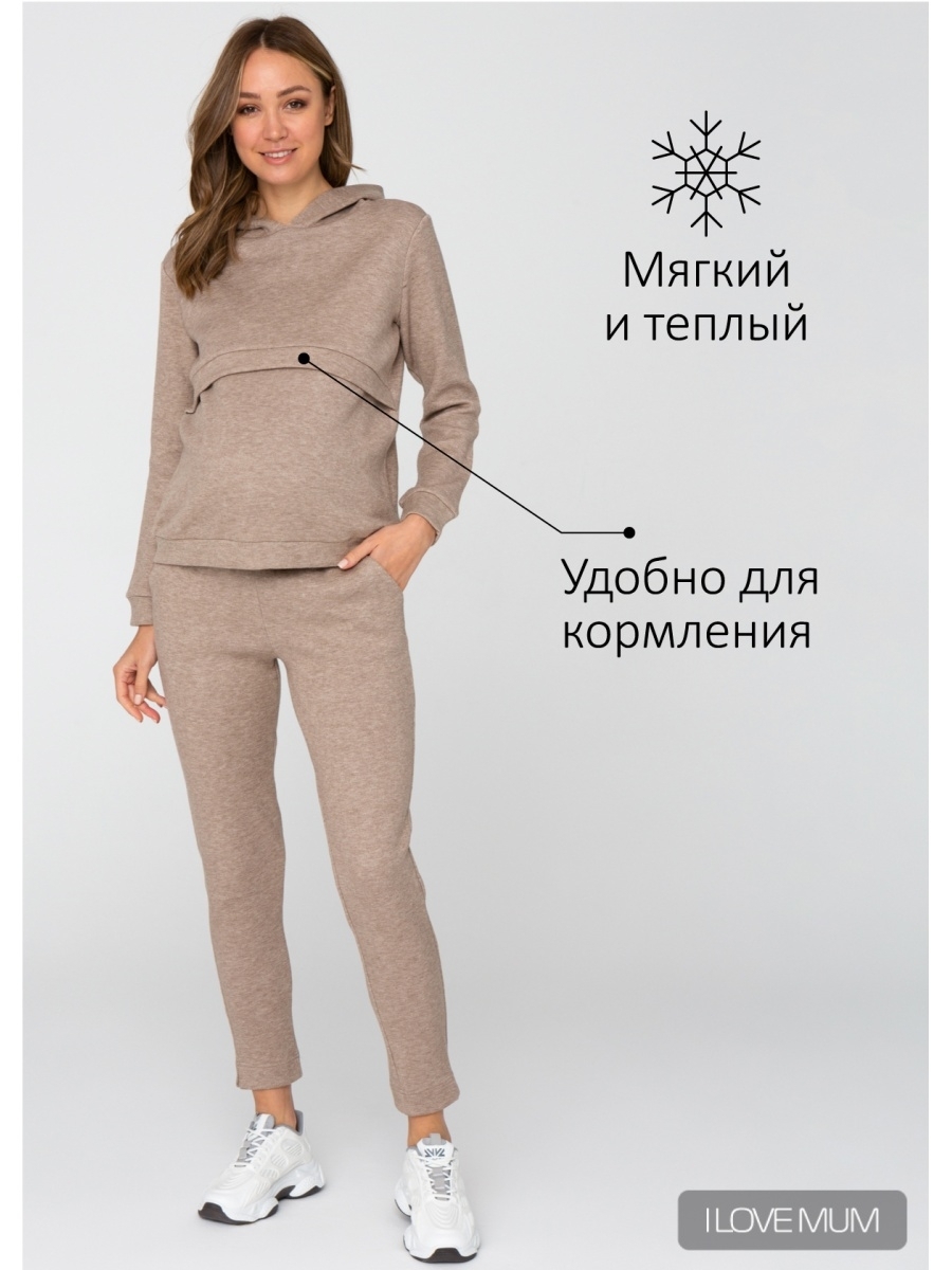 Спортивный костюм для беременных и кормящих ILOVEMUM является универсальным комплектом женской одежды для дома, прогулок, отдыха и спорта. Теплый, спортивный женский костюм, Бриена - хит сезона осень-зима. Утепленный, спортивный костюм для беременных и кормящих мам идеально подходит для прогулок в прохладную демисезонную погоду, осень и зиму. Стильный костюм из нежного, приятного трикотажного джерси, состоит из свитшота, толстовки, худи с длинным рукавом и секретом кормления и брюк с боковыми карманами и широкой, гибкой резинкой под живот. Теплый трикотажный, женский спортивный костюм - это идеальный подарок беременной женщине, будущей маме, подруге, подарок маме и для женщины любого возраста. В спортивном костюме, есть секрет кормления, который позволит с удобством кормить малыша грудью в любое время и в любом месте, не привлекая внимания.