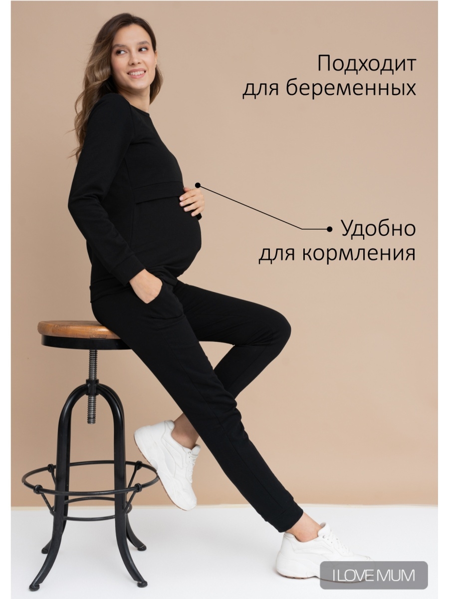 Спортивный трикотажный костюм с брюками для кормящих мам бренда I love mum оснащен удобным секретом для кормления на на груди. Так же Костюм удобен для беременных женщин - брюки с низкой посадкой и мягким поясом под живот с боковымикарманами. Кофта с длиными рукавами. Удобный и практичный костюм без утеплителя из хлопкового футера двухнитки - это отличная повседневная одежда для дома и прогулок. Что еще нужно мамочке с малышом- чтобы было практично и комфортно для нее и малыша. Костюм для беременных спортивный - прекраная одежда для кормления на весну и прохладное лето. Комплектация: лонгслив, брюки. Тип: для беременных и кормящих. Ткань: хлопковый футер 2-хнитка. Удобство кормления: двухслойная верхняя часть. Длина лонгслива по спинке: 60 см. Длина рукава: 60 см. Длина брюк по внутреннему шву: 72 см. Пояс: под живот. Карманы: боковые с отрезным бочком. Рекомендации по уходу: деликатная стирка в стиральной машине при 30C.