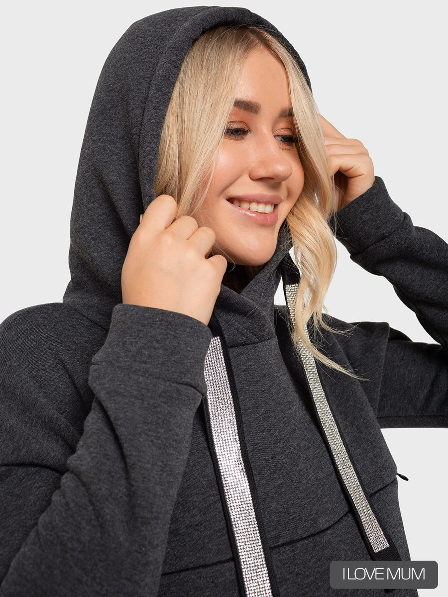 Тип: для беременных и кормящих.Ткань: толстый футер с начесом с изнанки.Толстовка.Удобство кормления: горизонтальная молния.карманы нет.Брюки.Пояс: трикотажная эластичная вставка на живот.Карманы: боковые.