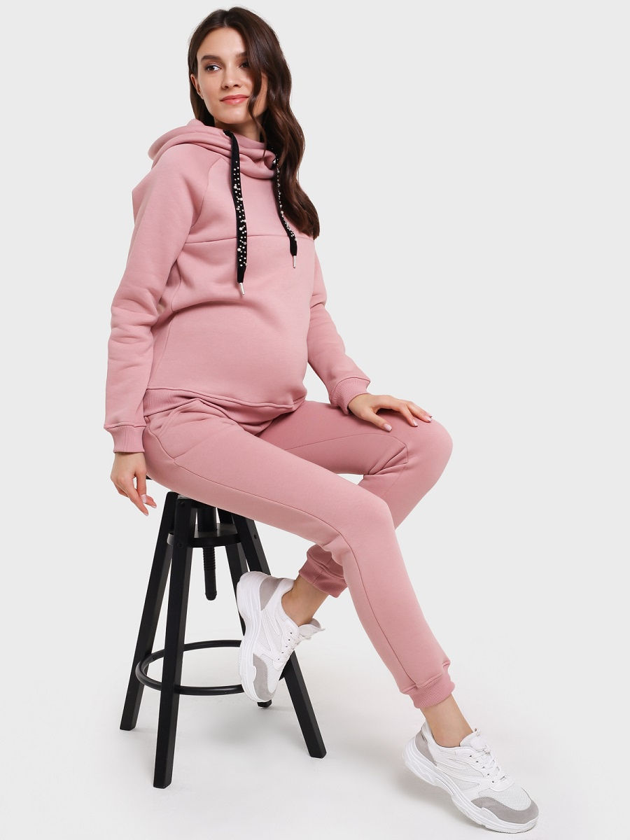 В комплекте: худи, брюки. Тип: для беременных и кормящих . Ткань: толстый футер с начесом с изнанки. Удобство кормления: потайная горизонтальная молния. Длина по спинке: 63 см. Длина рукава (реглан): 65 см. Пояс брюк: трикотажная вставка на живот. Длина по внутреннему шву: 76 см. Карманы: боковые. До начала ношения рекомендована первичная машинная стирка изделия при 30C.