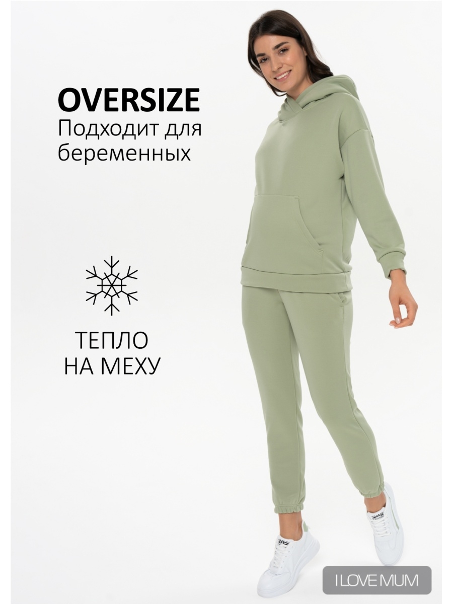 Теплый практичный костюм для беременных с мехом внутри, подходит на любой срок беременности. Комплект состоит из штанов на манжетах (джоггеры) с эластичной трикотажной вставкой для животика и свободного оверсайз худи с капюшоном и карманом-кенгуру. В этом уютном теплом костюмчике вы будете комфортно себя чувствовать в любую погоду, ведь он подходит на сезоны - осень, зима, весна. Толстовка для беременных с капюшоном прекрасно сочетается с джинсами и леггинсами, таким образом, приобретая этот костюм, вы покупаете универсальную базовую вещь в свой гардероб. А удобные штаны для беременных можно носить отдельно с футболкой. Этот костюм прекрасная базовая вещь на прохладные зимние вечера, для прогулок и выездов на природу. Костюм выполнени из синтетического трикотажного футера.