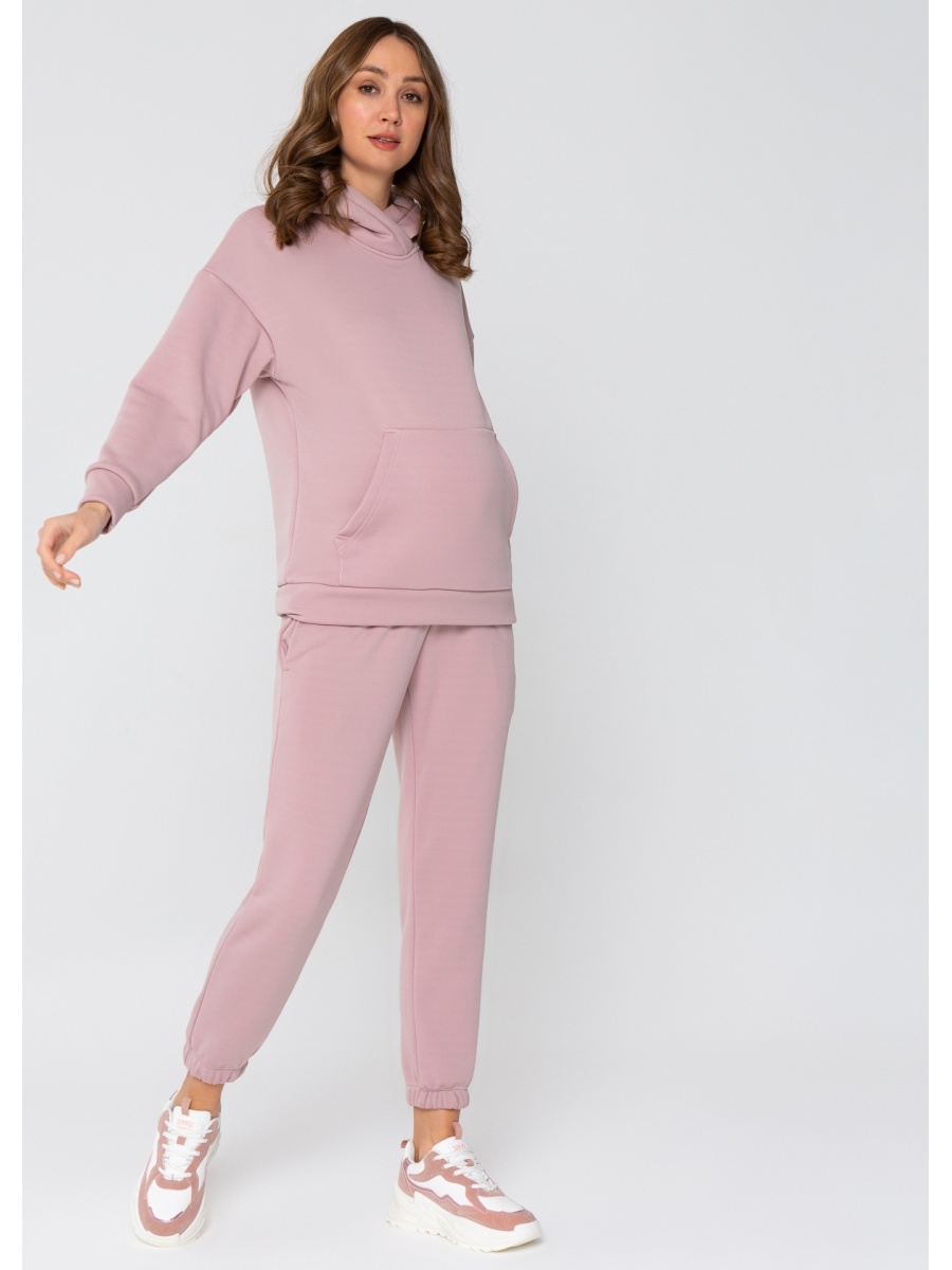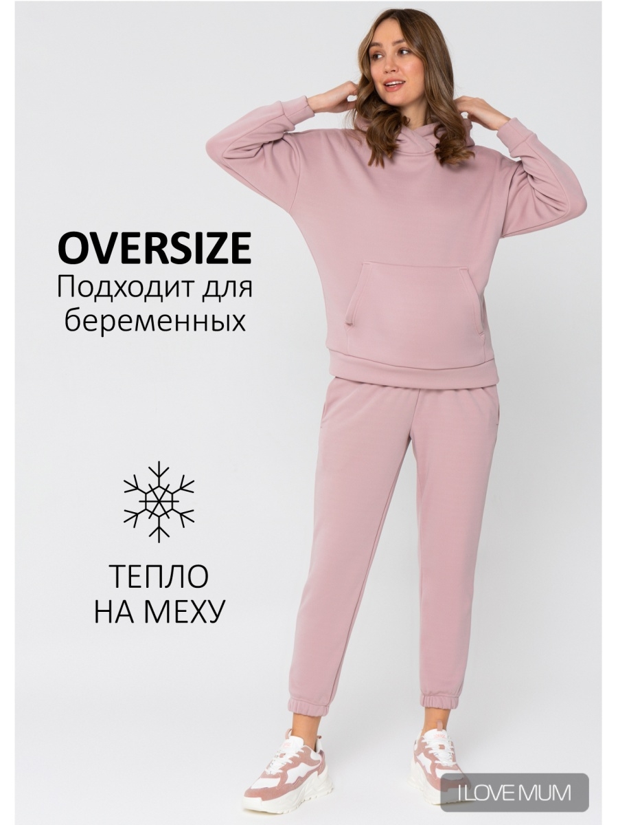 Теплый практичный костюм для беременных с мехом внутри, подходит на любой срок беременности. Комплект состоит из штанов на манжетах (джоггеры) с эластичной трикотажной вставкой для животика и свободного оверсайз худи с капюшоном и карманом-кенгуру. В этом уютном теплом костюмчике вы будете комфортно себя чувствовать в любую погоду, ведь он подходит на сезоны - осень, зима, весна. Толстовка для беременных с капюшоном прекрасно сочетается с джинсами и леггинсами, таким образом, приобретая этот костюм, вы покупаете универсальную базовую вещь в свой гардероб. А удобные штаны для беременных можно носить отдельно с футболкой. Этот костюм прекрасная базовая вещь на прохладные зимние вечера, для прогулок и выездов на природу. Костюм выполнени из синтетического трикотажного футера.