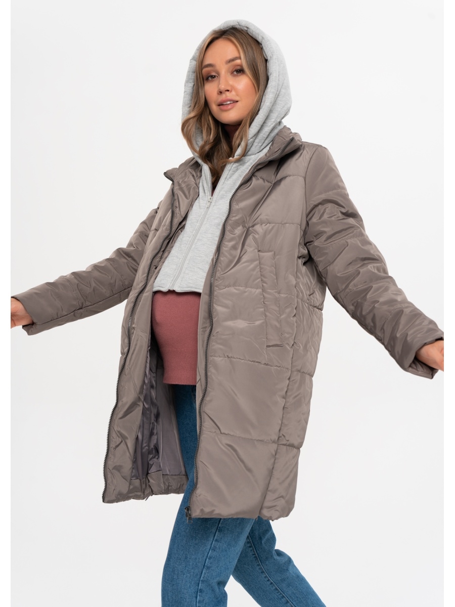 Бриошь актуальная модель теплой демисезонной женской куртки бренда ILOVEMUM. Пальто прямого кроя до середины бедра в стеганном варианте качественной плащевой ткани. Куртка для беременных не мокнет, капли влаги просто скатываются вниз, что делает изделие универсальным для прогулок в любую погоду. Она отлично сохраняет тепло, при этом очень легкая, за счет наполнителя термофинн (150 г/м2). Изюминка модели капюшон из плотного дышащего футера, обеспечивает дополнительный комфорт и задающий стиль изделию. Все продумано до мелочей для комфорта женщины: застежка-молния, глубокие боковые карманы, внутренний жилет из футера. Такая верхняя одежда для беременных будет отлично сочетаться с кроссовками или модными ботинками. Обратите внимание на боковые вставки, которые органично смотрятся и помогают посадить куртку для беременных точно по растущему животику. После окончания беременности такую осеннюю женскую куртку можно носить как обычное изделие на прогулки с малышом или спортивные мероприятия.
