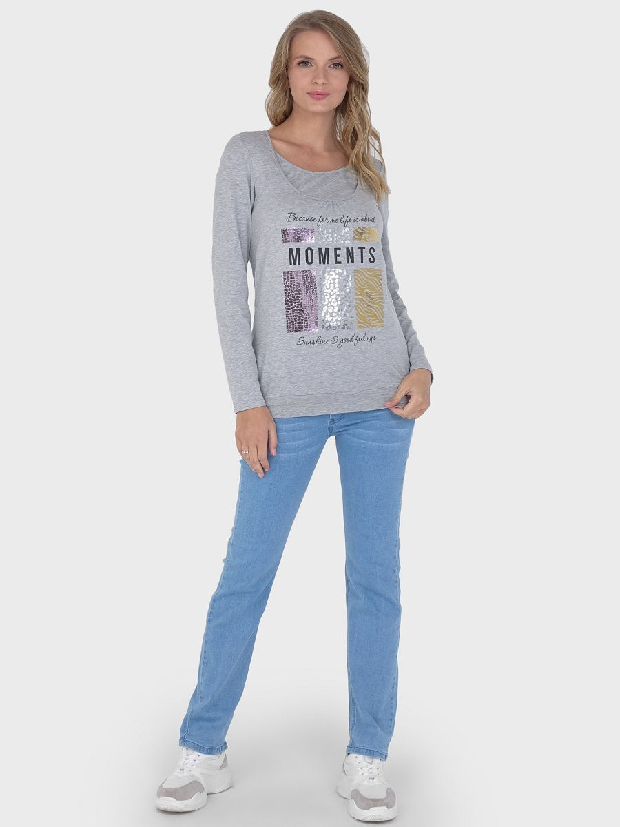 Лонгслив I love mum для беременных и кормящих из хлопкового трикотажа. Удобство кормления: двойной топ. Длина рукава: 58 см.