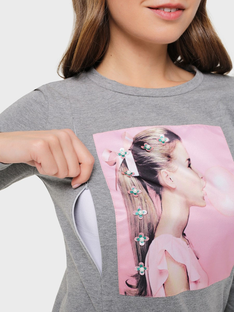 Лонгслив I love mum для беременных и кормящих выполнен из хлопкового трикотажа. Удобство кормления грудью: потайные вертикальные молнии. Длина рукава: 60 см.