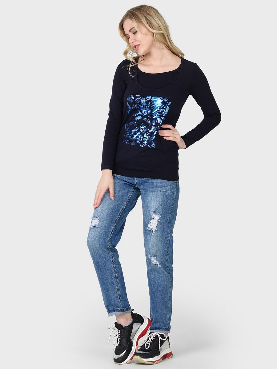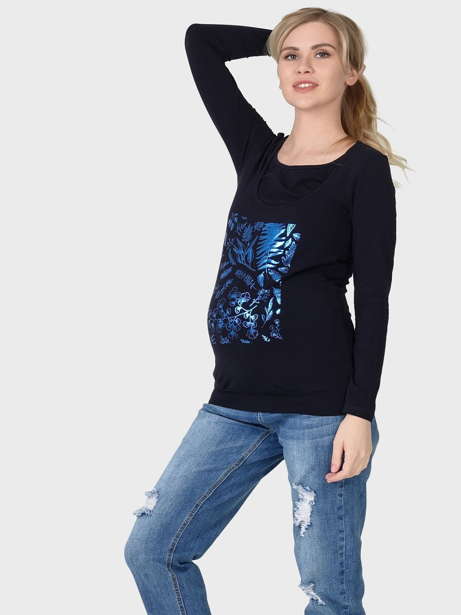 Лонгслив I love mum для беременных и кормящих из хлопкового трикотажа. Удобство кормления: двойной топ. Длина рукава: 58 см.
