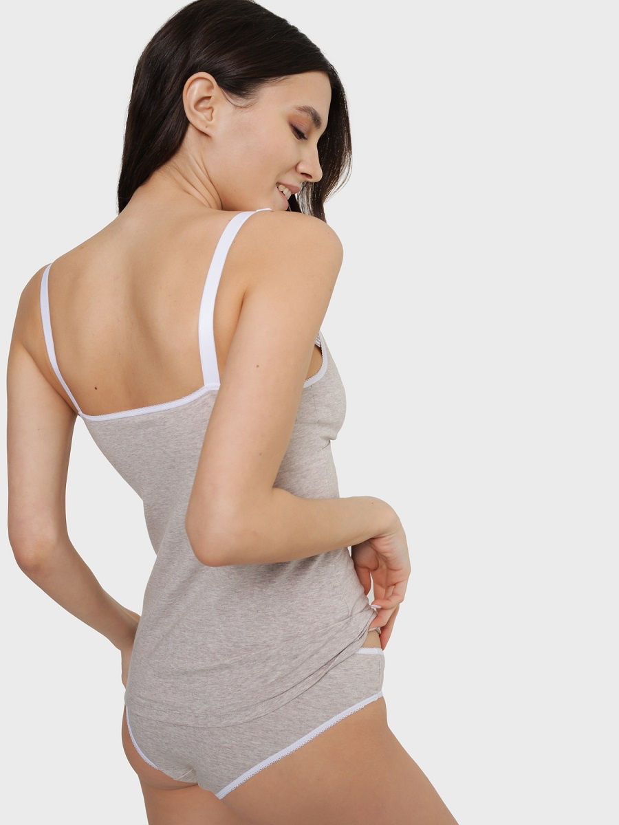 Майка I love mum для беременных и кормящих из хлопкового трикотажа и эластичного кружева. Бретели: классические, с регулировкой; ширина 14 мм. Удобство кормления: застежка-клип на каждой бретели. Длина по спинке: 46 см. (без учёта лямок). Вы можете дополнить майку Дольче трусиками, ночной сорочкой, пижамой или комплектом для роддома из коллекции "Дольче".
