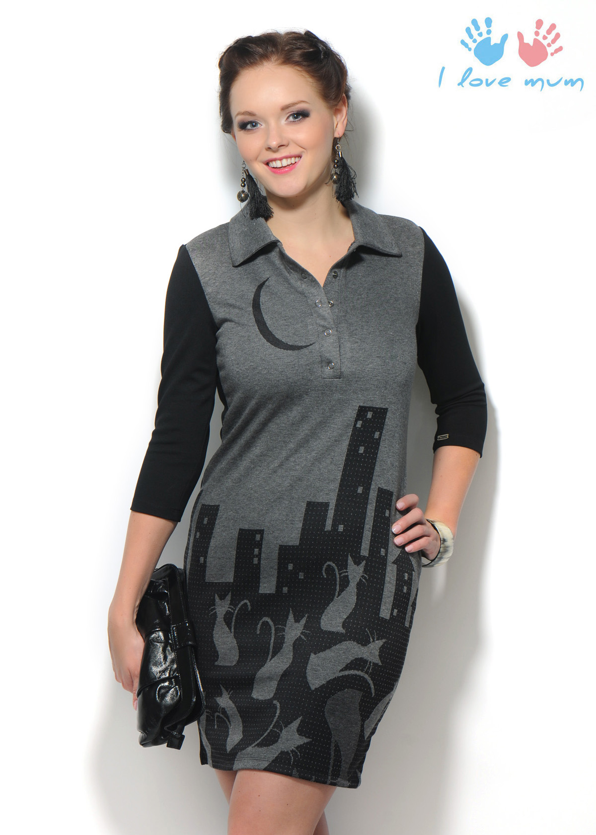 Удобное платье для кормления имеет классический фасон: отложной воротник, рукав 3/4 , глубокую планку спереди, которая застегивается на кнопках, благодаря чему можно незаметно покормить малыша.