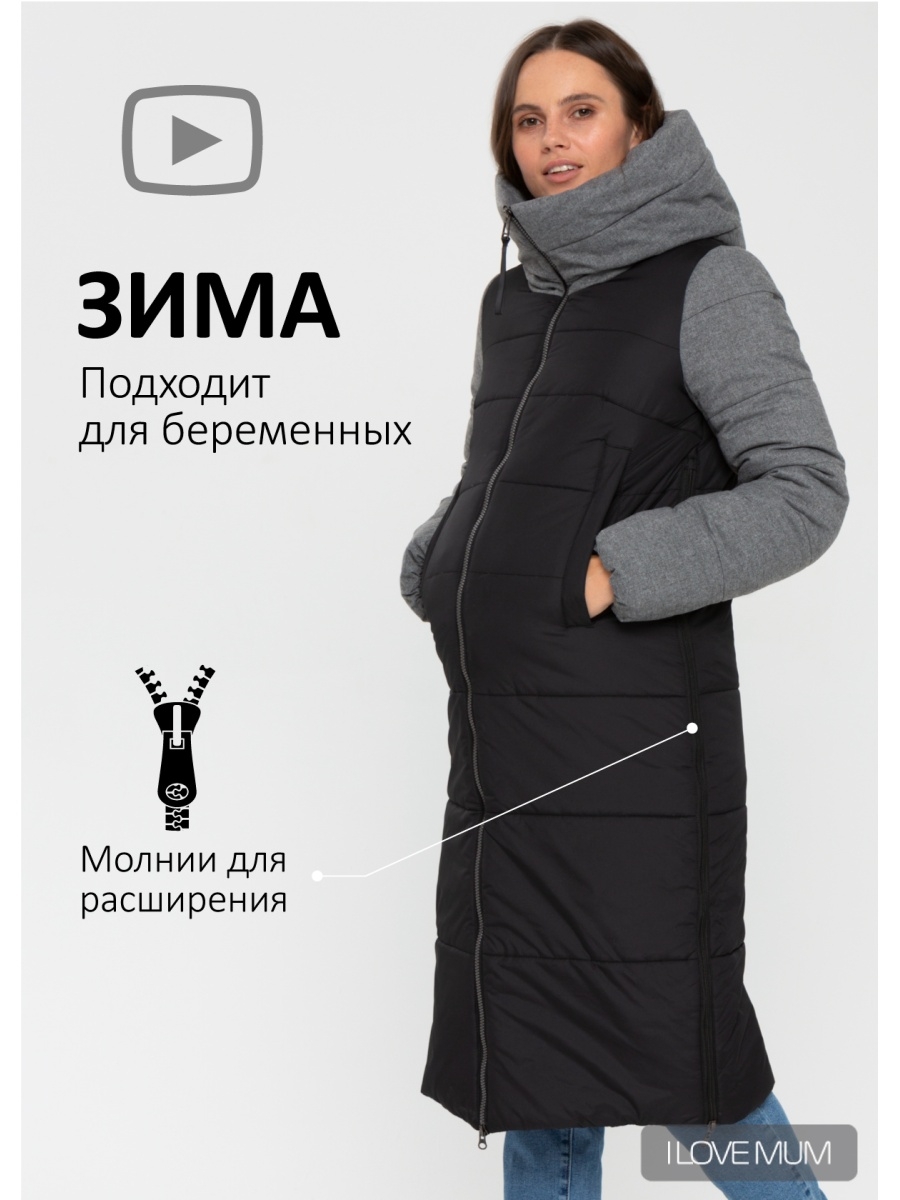 Пуховик для беременных зимний Бретань цвет черный/серый I Love Mum Пуховик для беременных зимний Бретань цвет черный I Love Mum Пуховик для беременных зимний Бретань цвет черный/серый I Love Mum