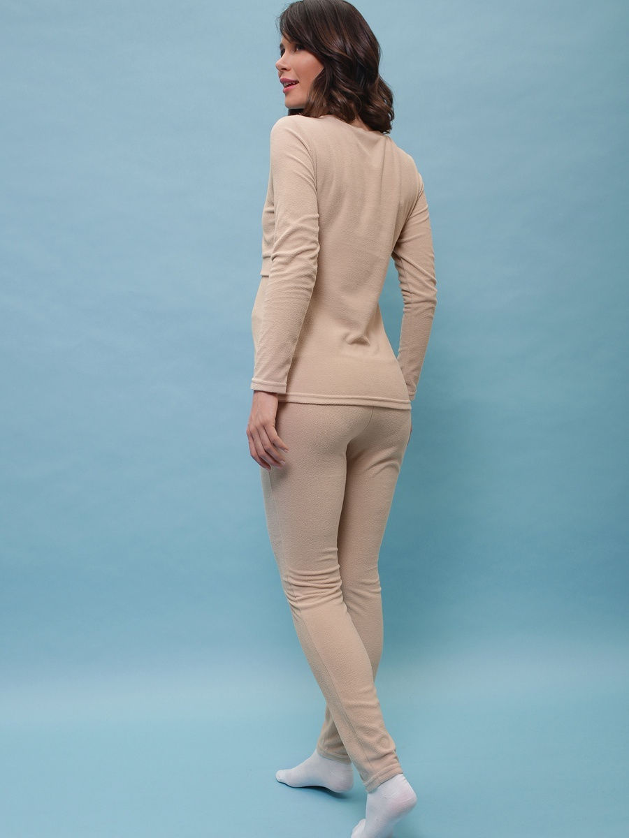 Комфортное термобелье анатомического кроя из флиса для беременных и кормящих. Выполнено из высококачественного микрофлиса - очень мягкая и приятная в носке ткань, отводит излишнюю влагу и сохраняет тепло, обеспечивая внутренний комфорт телу. Крой костюма таков, что он не стесняет движений, рассчитан на весь период беременности, а также - после неё. Для удобства кормления малыша предусмотрен функциональный двухслойный подрез под грудью. Важным для термобелья свойством флиса является и то, что он очень прост в уходе - легко стирается и быстро сохнет. Длина изделия по спинке: 63 см. Длина рукава: 62 см. Длина брюк по внутреннему шву: 75 см. Рекомендации по уходу: ручная или машинная стирка при температуре 30С.