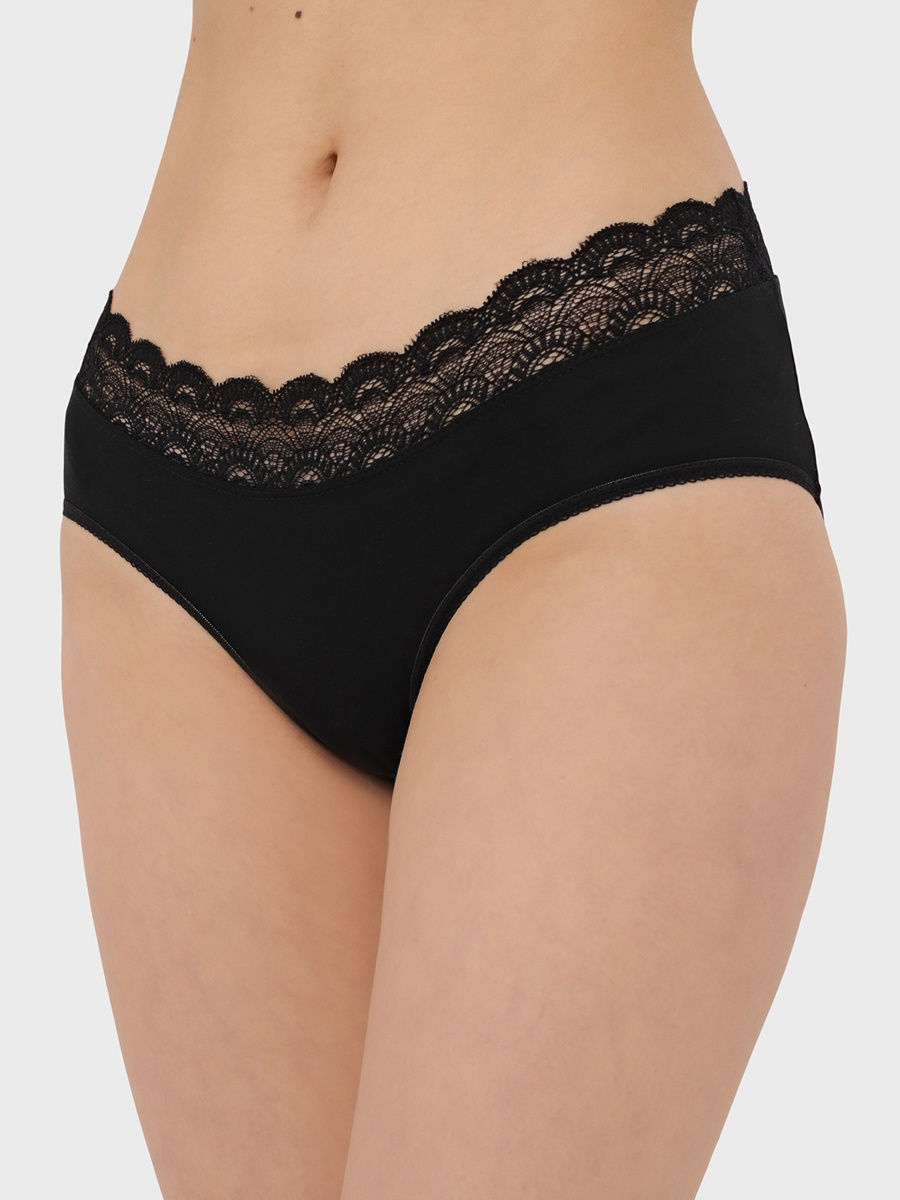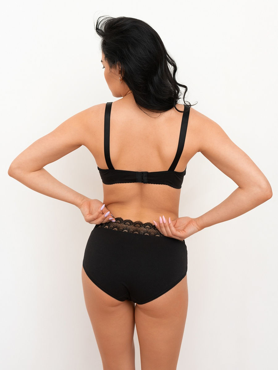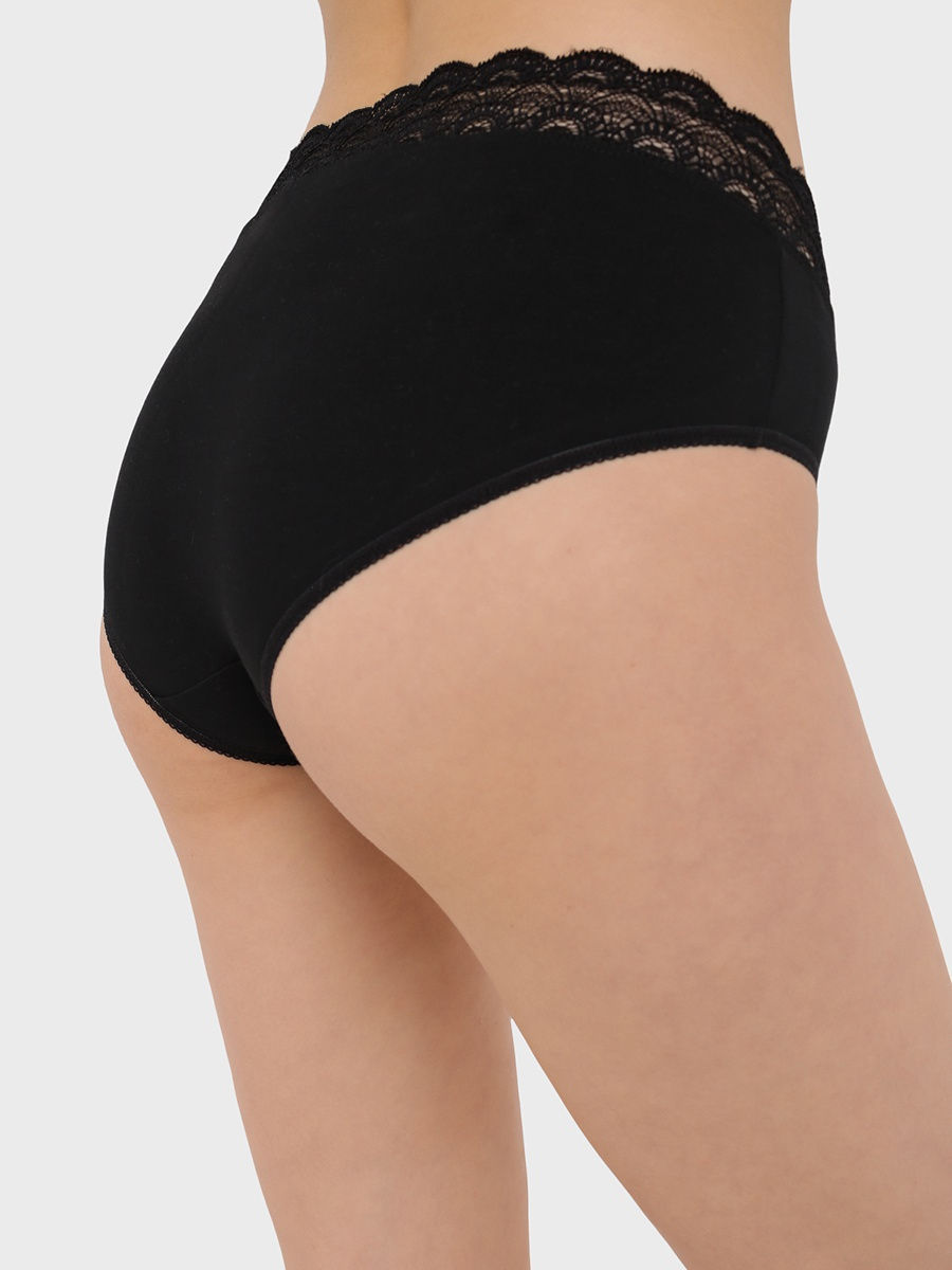Комфортные базовые трусы с высокой талией. Подходят также и для беременных // **Модель**: хипстеры // **Посадка**: высокая // **Материал**: хлопковый трикотаж, кружево // **Уход за вещами**: деликатная стирка при 30 градусах